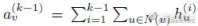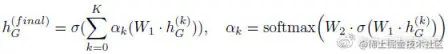 表示的是节点 v 在第 k 次迭代时的特征表示。AGGREGATE()和 COMBINE()都是第 k 个图卷积层的可学习信息传递函数。N(v)表示节点 v 的相邻节点的集合。通常,在 K 次迭代步骤之后,可以将最终的节点表示