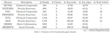 这篇文章使用了图神经网络领域 8 个常用的图数据集,通过执行 10 倍交叉验证来评估性能,并报告测试准确度的均值和标准差。