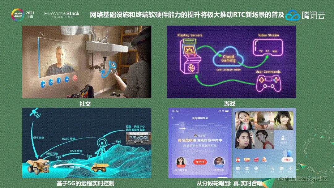 虽然疫情在客观上推动了实时音视频行业的发展,但RTC仍然处在爆发前夜。目前比如社交、云游戏、远程实时控制、合唱等RTC重要场景虽然已经有落地应用,但体验都无法达到最佳,或者存在各种各样的限制。未来随着网络基础设施和终端软硬件能力的提升,端到端平均延迟能达到50-80ms,RTC产品的体验也将会有质的提升,场景和应用也会迸发出更多活力。以上是我今天的分享,谢谢大家。