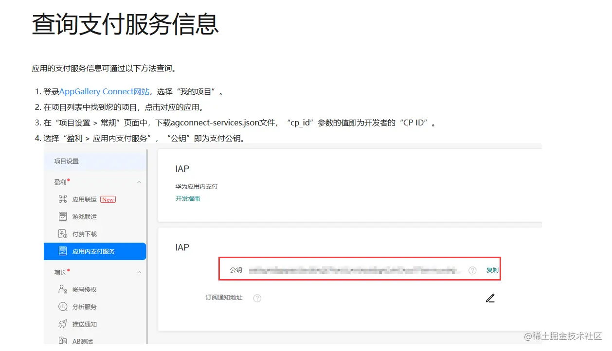华为从IAP sdk3.x版本开始,支付公钥要参考如下章节获取,详细请参考文档: