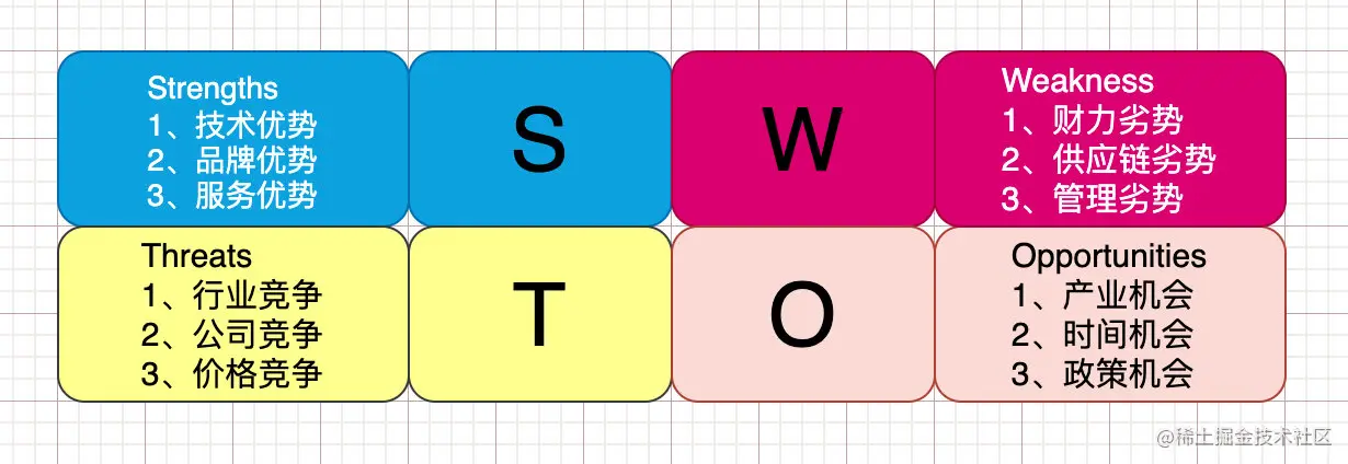 - O:Opportunities,机会、机遇