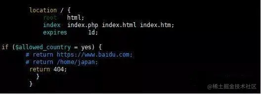 如果满足 IP 是国外 IP 就执行下面的 return 动作,我这里定义了 3 种, 注释了其中两个。