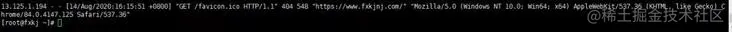 “13.125.1.194 – – [14/Aug/2020:16:15:51 +0800] “GET /favicon.ico HTTP/1.1” 404 548 “https://www.fxkjnj.com/” “Mozilla/5.0 (Windows NT 10.0; Win64; x64) AppleWebKit/537.36 (KHTML, like Gecko) Chrome/84.0.4147.125 Safari/537.36”