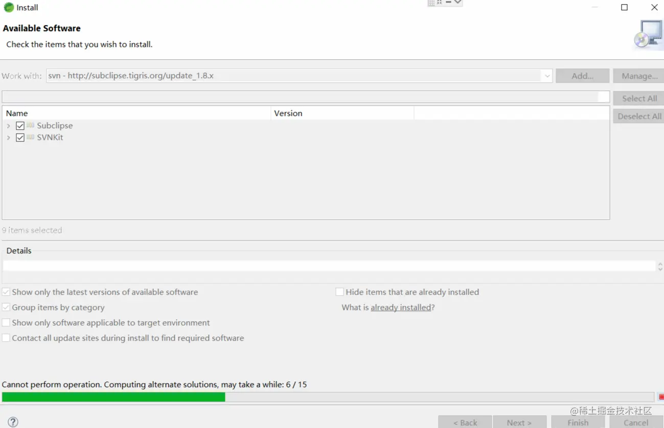 Eclipse/Spring Tool Suite在线安装svn插件 AMAZING 2021-05-07 252 阅读1分钟 在线链接地址,下图会用到 subclipse.tigris.org/update_1.8.…