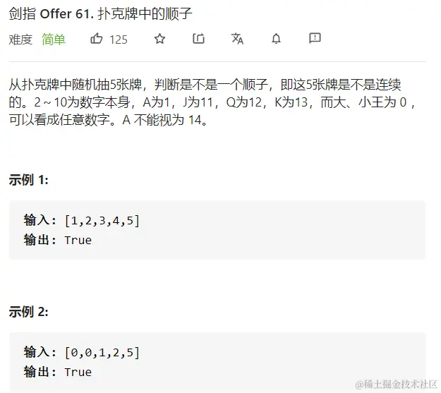 - 本题采用的是通过零数组来辅助判断是否是顺子