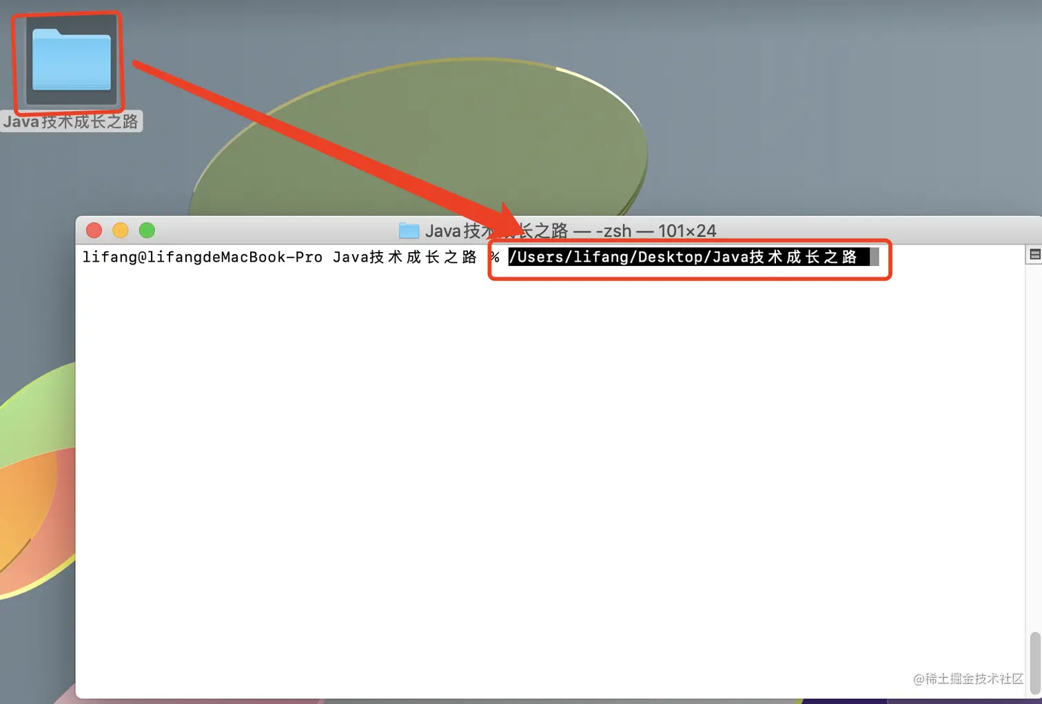 然后将要查找的文件拖到终端即可显示对应的文件路径