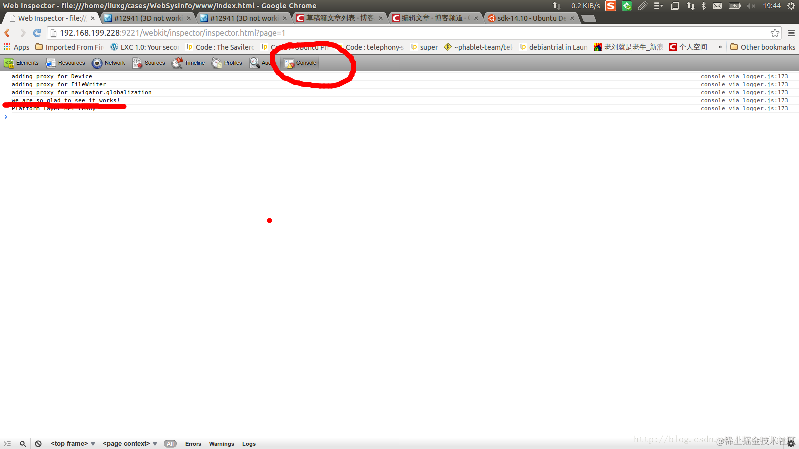 Inspector server started successfully. Try pointing a WebKit browser to http://192.168.199.228:9221