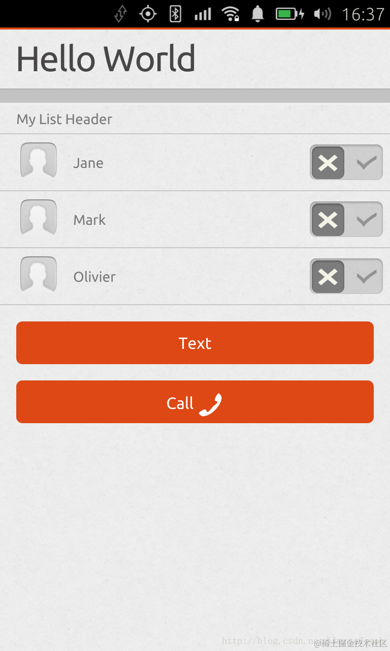 这样我们的一个简单的应用就已经做好了。在Nexus 4上面我们可以看到如下的画面