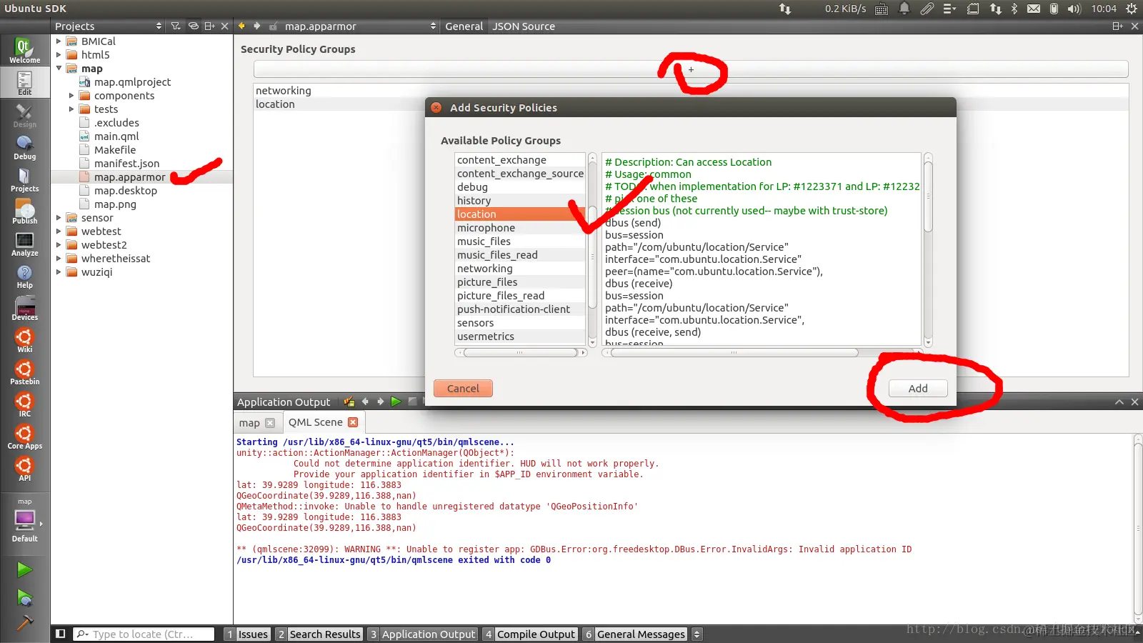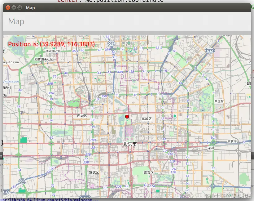 在这里我们使用了我们伟大祖国的北京地址经纬度坐标(39.9289,116.3883)。同时我们必须指出的是,我们必须使用名叫"osm"的plugin接口。以前一下诺基亚的手机,使用的是名为"nokia"的plugin。为了正确使用这个接口,我们必须在QML文件中调用如下的库:
