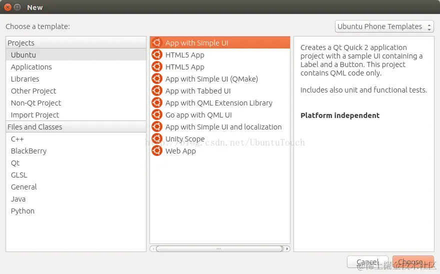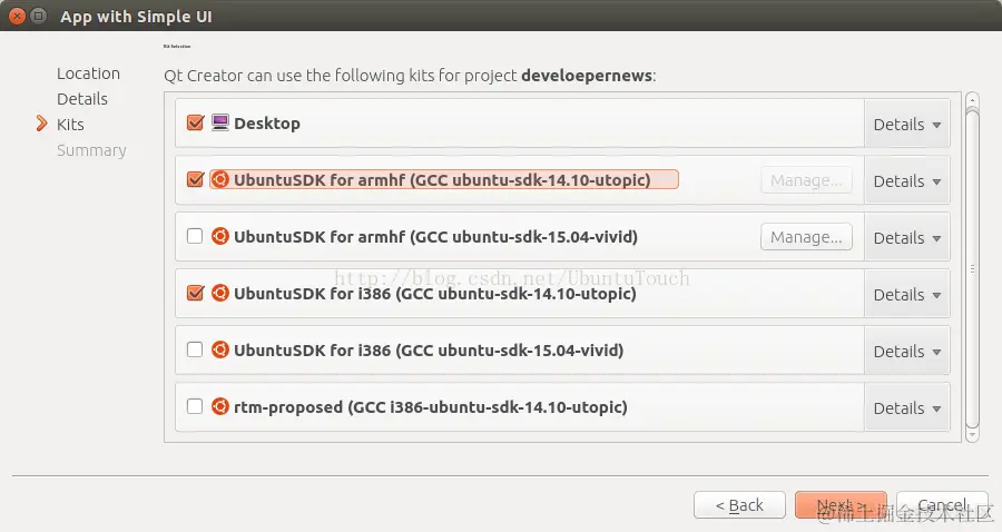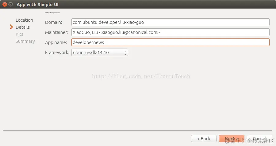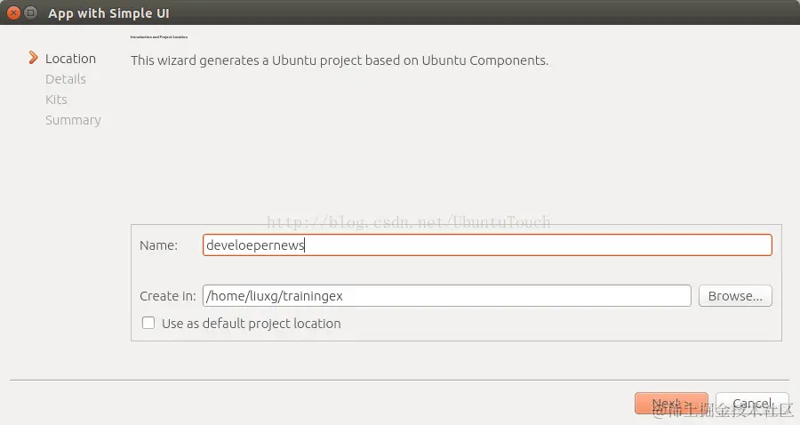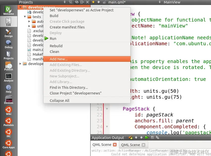 首先,我们来打开自己的Qt Creator来创建一个名叫“developernews”的项目。我们使用"App with Simple UI"模版。