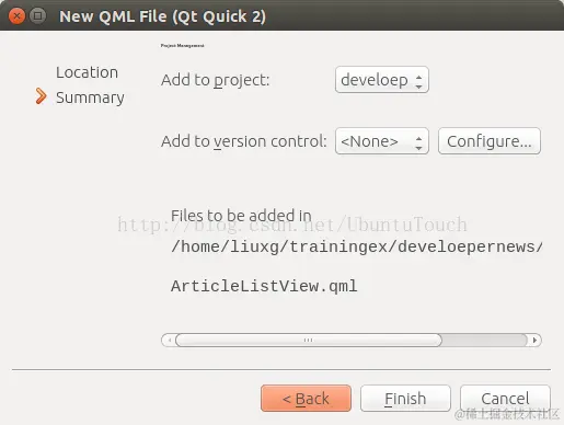我们将加入一个新的QML控件。这个控件的名称叫做“ArticleListView"。它将被定义在一个叫做"ArticleListView.qml"的文件中。控件的名字通常是以大写字母开始的。