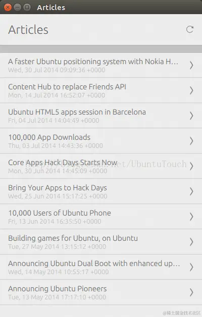 当然我们也可以使用 [UbuntuListView](https://developer.ubuntu.com/api/qml/sdk-14.10/Ubuntu.Components.UbuntuListView/)中的“PullToRefresh”功能实现这个功能。整个项目的源码在如下的地址可以找到: