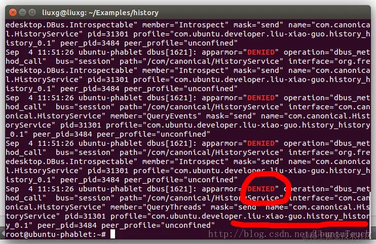 root@ubuntu-phablet:~# grep "DENIED" /var/log/syslog \