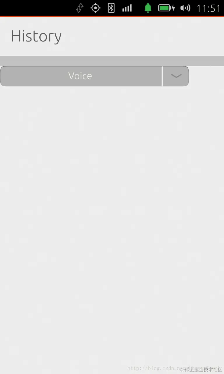 这里我们可以参考 ComboButton来更加多了解如何使用这个控件。这里,我们提供了三个选项" Voice", " Text" 及“ Thread"。同时我们也创建了俩个不同的history model。\