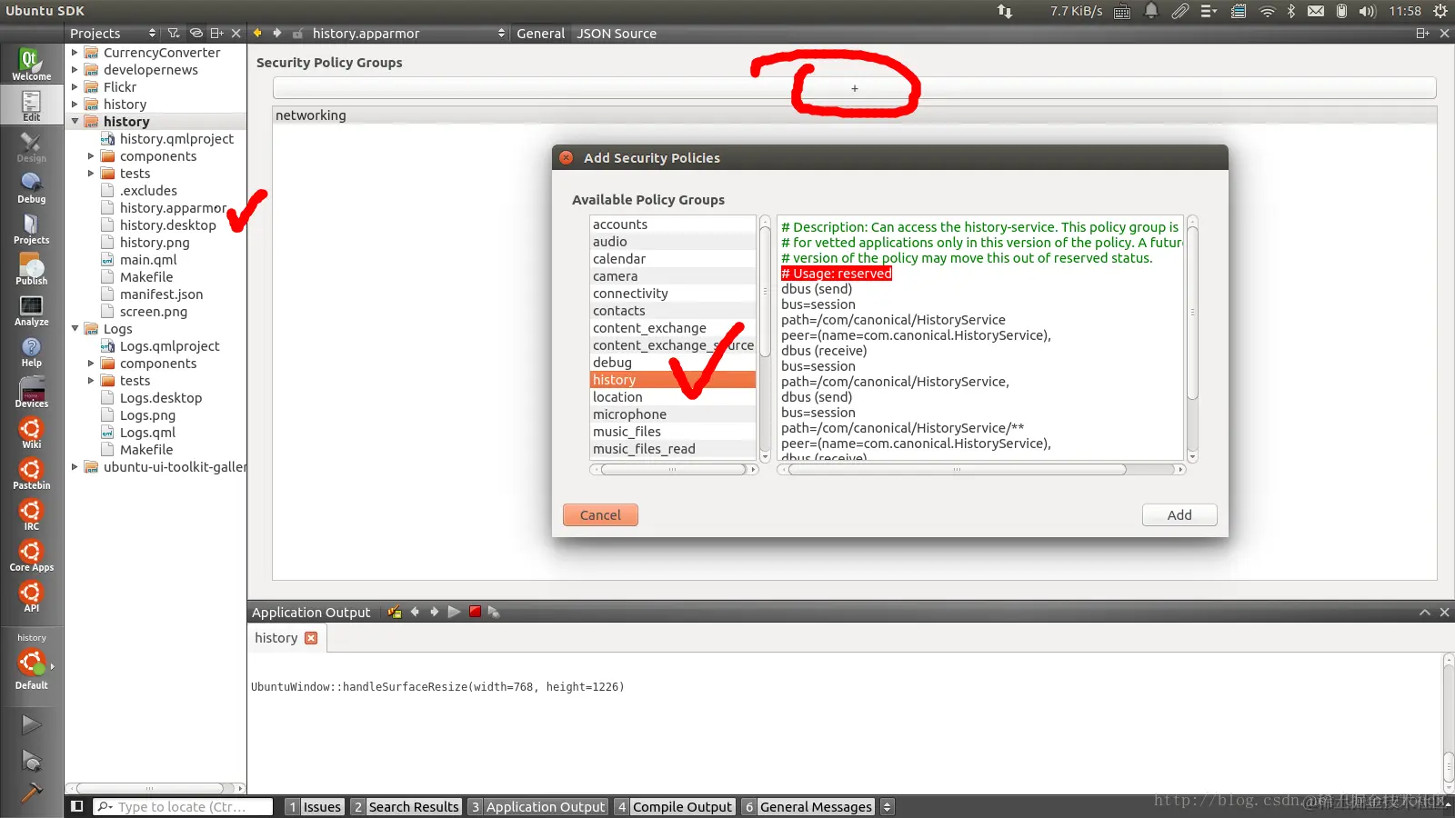 显然,我们遇到了一个安全的问题。为了接的这个问题,我们必须在应用中加入它所需要的policy。