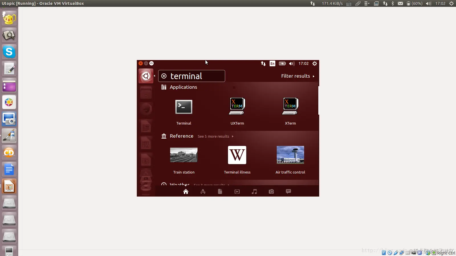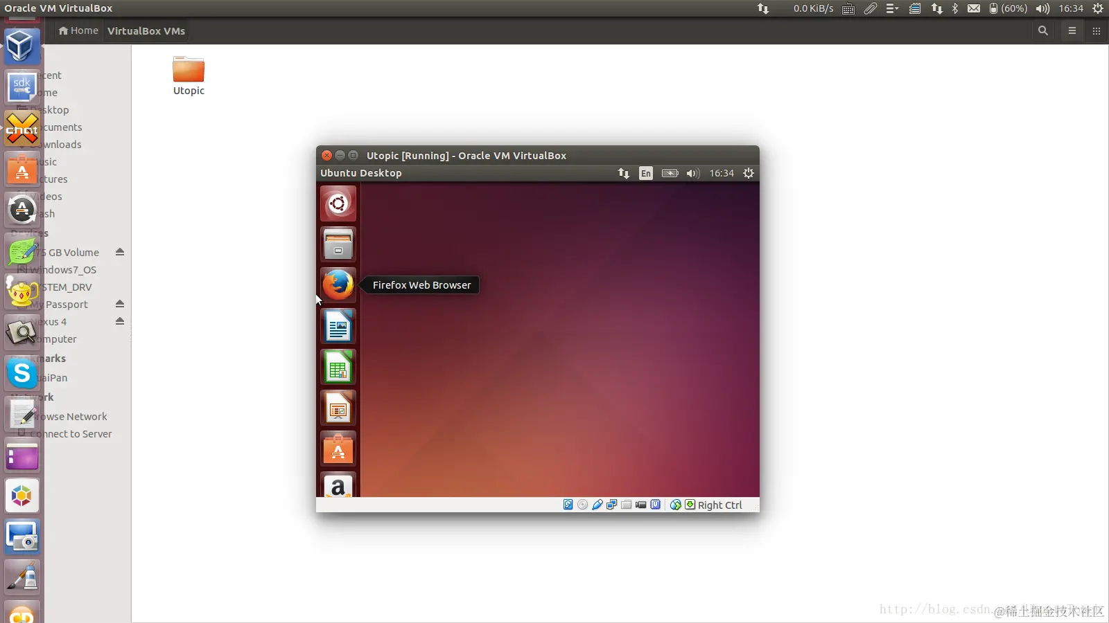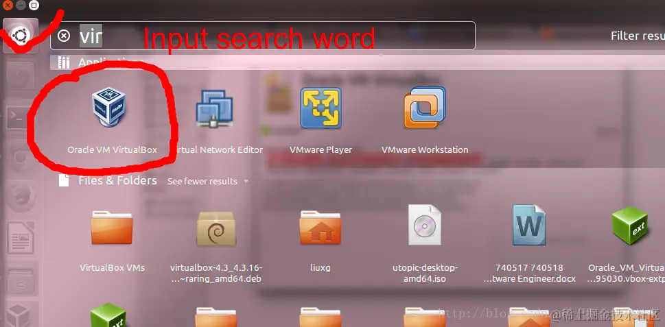 至此,我们已经完成了对VirtualBox的安装。我们可以在Ubuntu中打开dash,找到VirtualBox的图标。在Windows上,我们也可以通过类似的方法找到相应的图标: