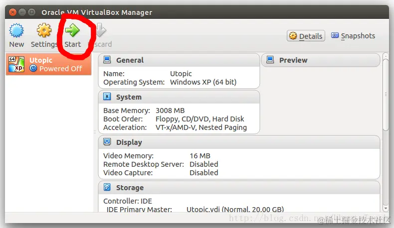 点击VirtualBox中的“ Start”