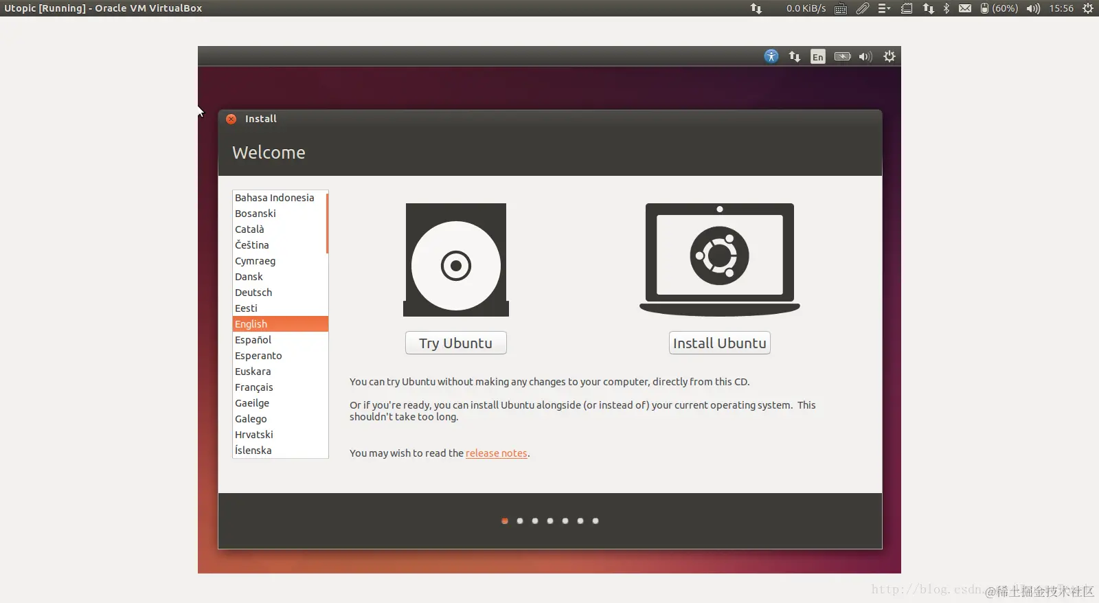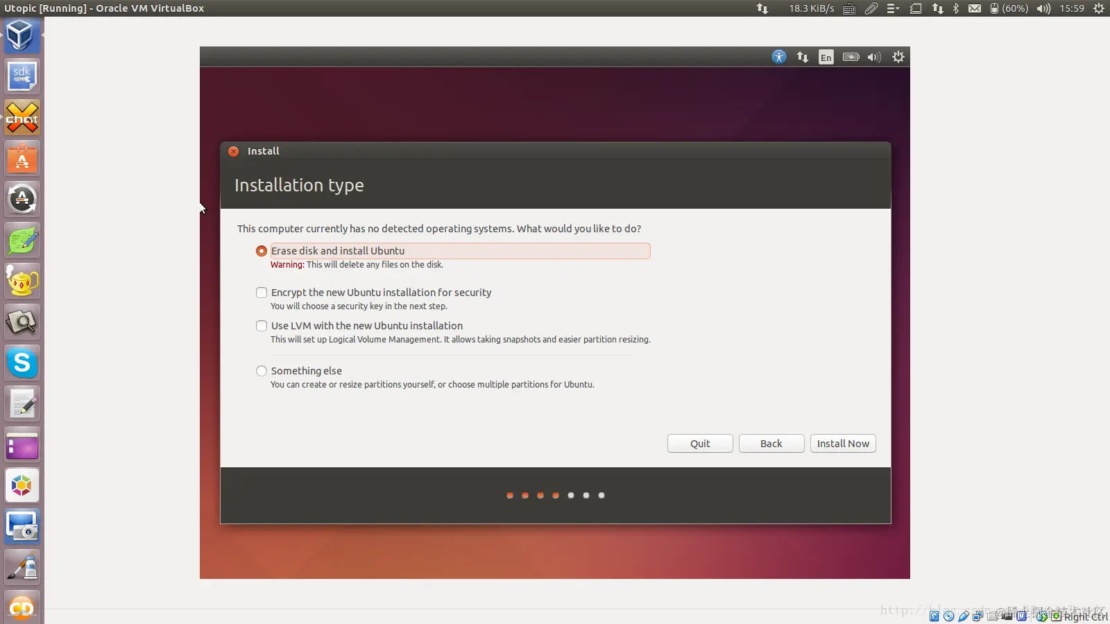 4) 在VirtualBox中安装Ubuntu OS