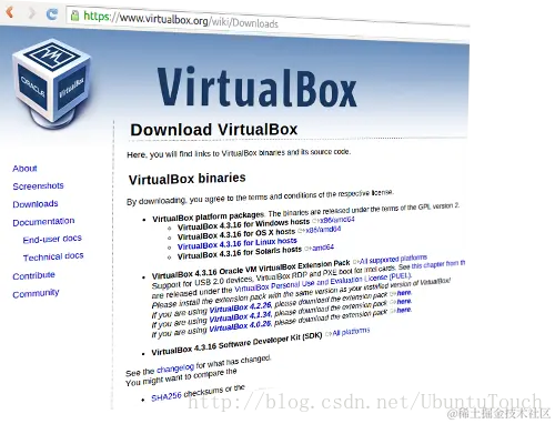 首先我们到网站 https://www.virtualbox.org/wiki/Downloads 下载最新的virtualbox。