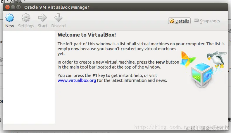 点击VirtualBox图标,我们可以看到如下的画面: