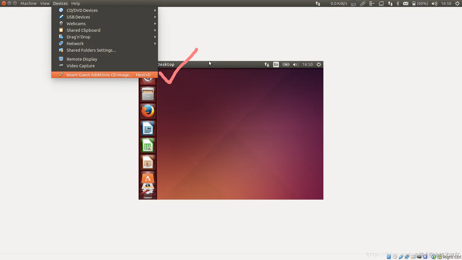我们发现当我们把Ubuntu OS安装好后,界面的分辨率是不对的。我们没法把它的分辨率调到我们的主屏幕的分辨率。这时我们需要安装Extensions。