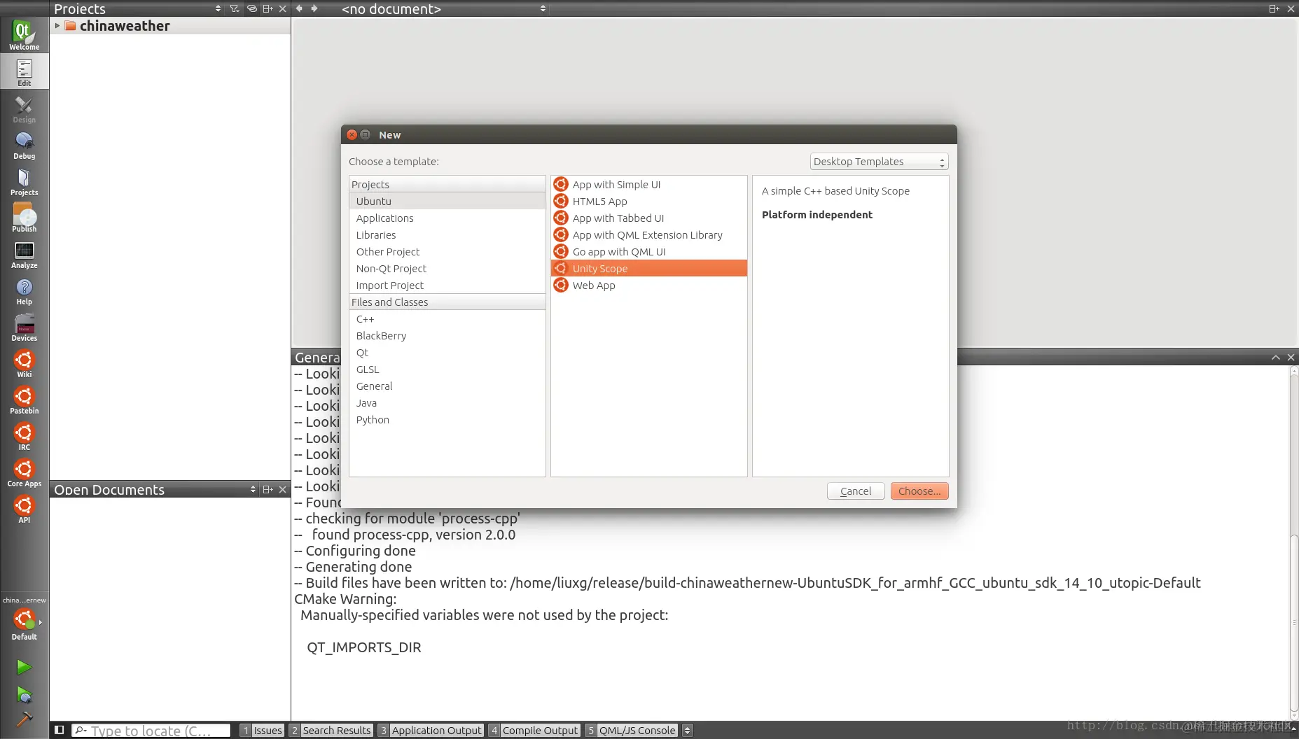 1)启动Ubuntu SDK来创建一个基本的Scope应用