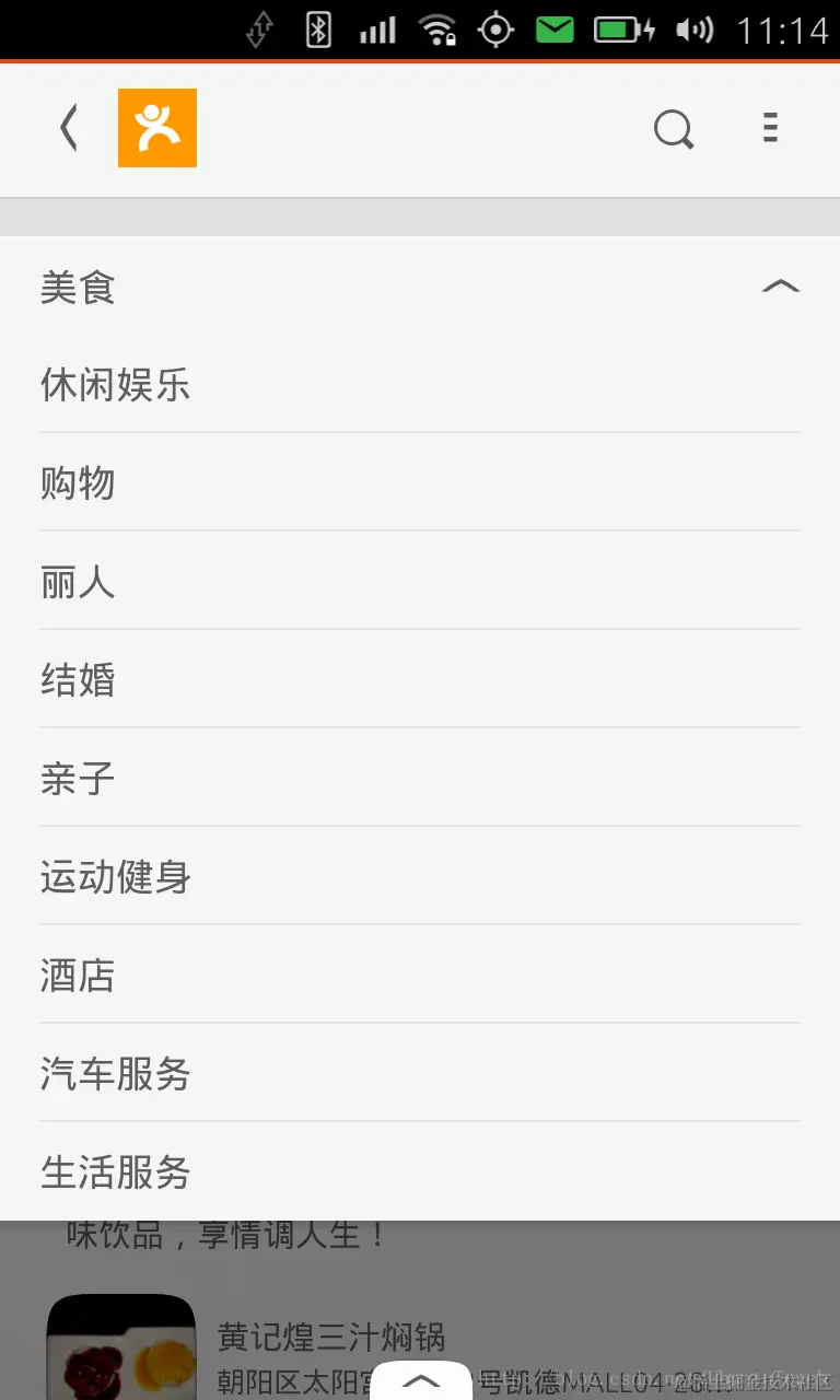 首先,坦率地说,我们很难找到一个很确切的中文词来描述它。姑且叫它部门Scope吧。在上面的左图上,我们可以看到在“ 美食”的正右边,有一个向下的下拉箭头。点击它后,就可以看到如中间图所示的菜单。这也就是说,我们可以对点评网的每个category进行分别地搜索,而不是把不同领域的搜索结果都罗列出来。比方,我想找吃的,我只想知道和餐馆相关的信息,而不要和美容,娱乐相关的搜寻结果。通过我们对点评API的 接口: