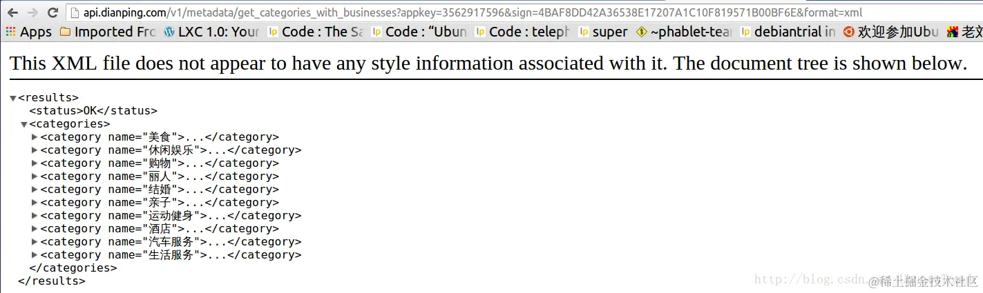 进行分析,我们可以把“category”设置为我们的部门,这样我们就可以对每个领域进行分别的搜寻。我们也可以通API接口来得到所有点评的category: