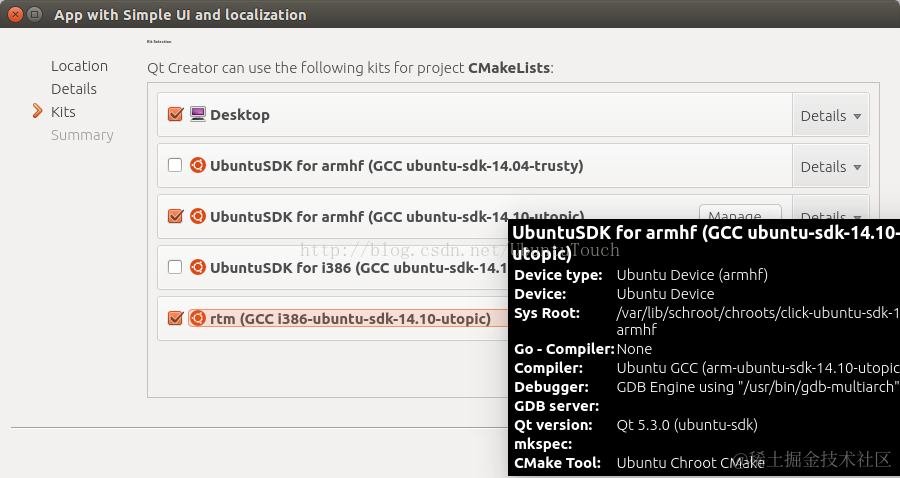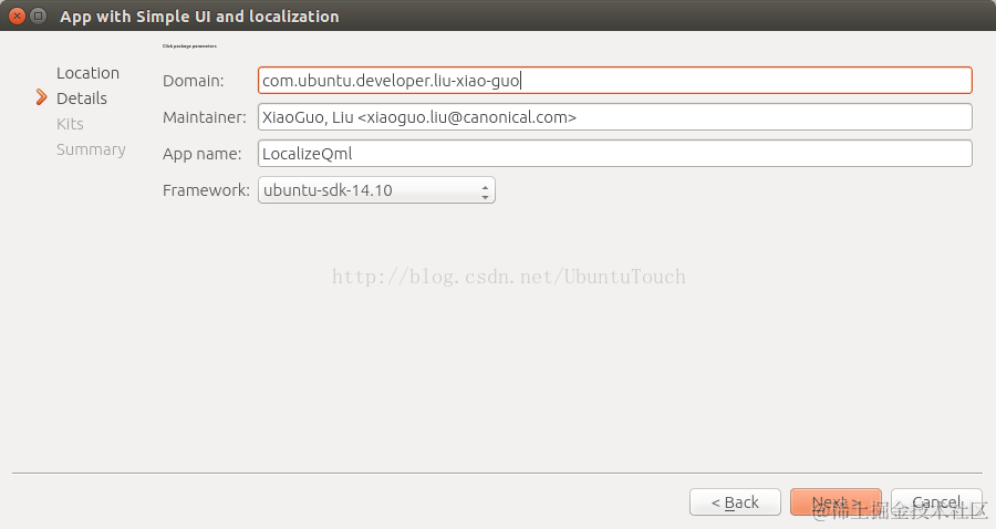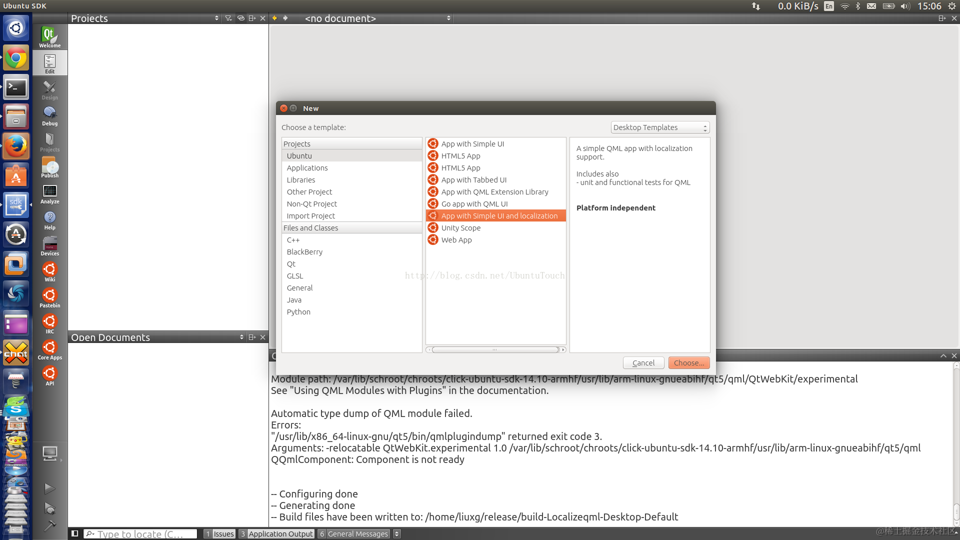 首先打开我们的Ubuntu SDK,并选择“App with Simple UI and localization”的模版。