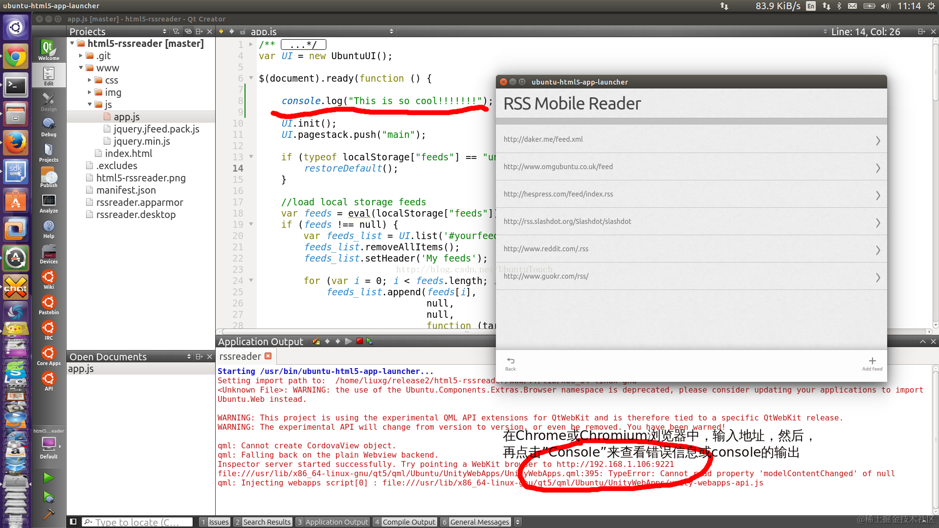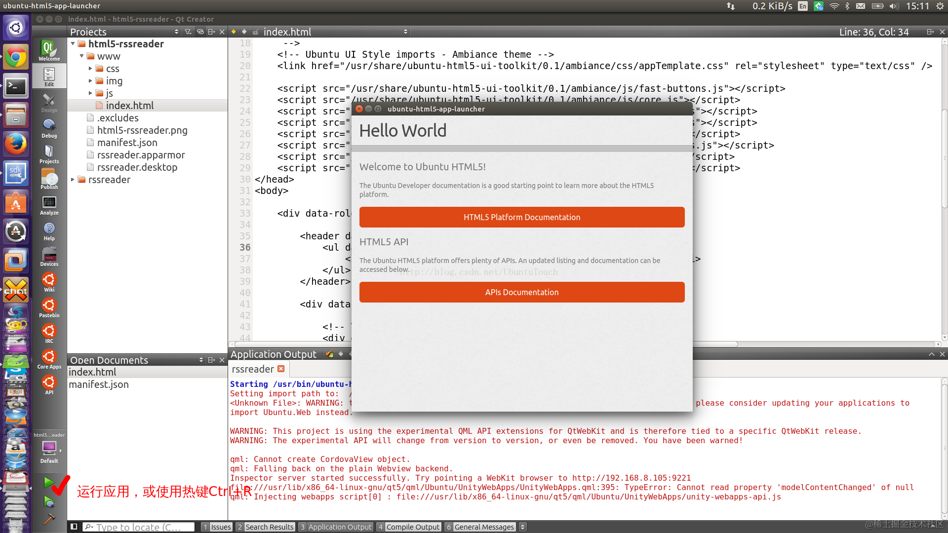 请按照上面的步骤来创建一个新的项目“html5-rssreader”。我们首先在Desktop上运行该应用(使用热键 Ctrl + R):