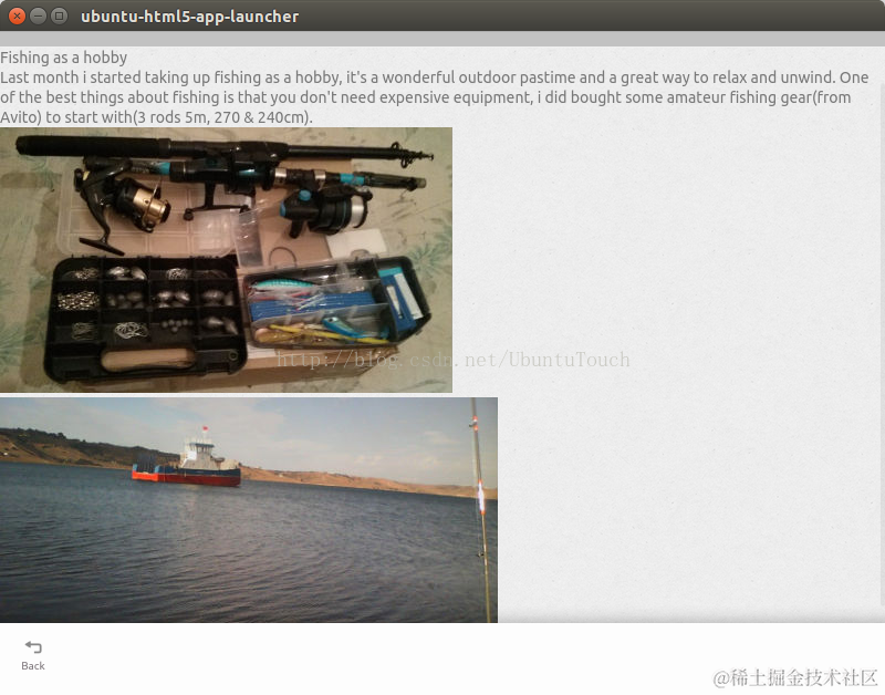 如果我们现在再运行我们的应用,我们可以看到如下的内容。我们可以看到我们的应用的page标题已经发生变化。我们同时也可以注意到在页面的最下面,我们可以看到“back”字样。这是和上面的显示是不同的地方。