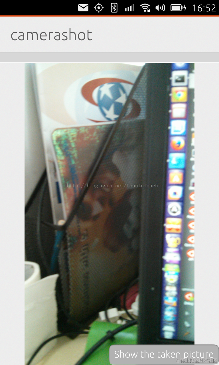 整个的设计非常简单。在主界面中我们可以在相机的影像的任何地方进行触屏来拍下我们的照片。我们可以使用“Show the taken picture”按钮来进入下一个页面来显示存储的图片。为了方便设计,我们选择了一个固定的文件名。当然,开发者们可以自己来选择自己的所需要的文件名。