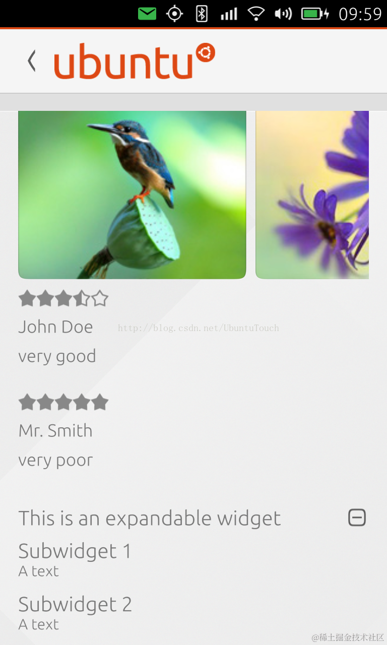 这里虽然使用了自己定义的图片“rating-icon-empty”及“rating-icon-full”,但是我觉得一般不建议使用虽然可以做到定制化。原因是我们必须严格按照Ubuntu标准的icon来设计自己的图片,这样才可以使得显示正确无误!