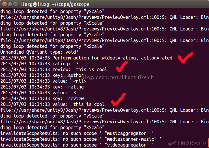 在Go 文件中实现上面的PerformAction就可以捕获在Preview中的按钮事件。我们在上面的代码中打印出rating及review的值。