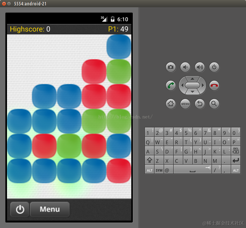 今天,我也有幸在我的Ubuntu Desktop上实现了Qt在android手机上的运行。我从Qt SDK中移植过来一个应用samegame。它的源码在: