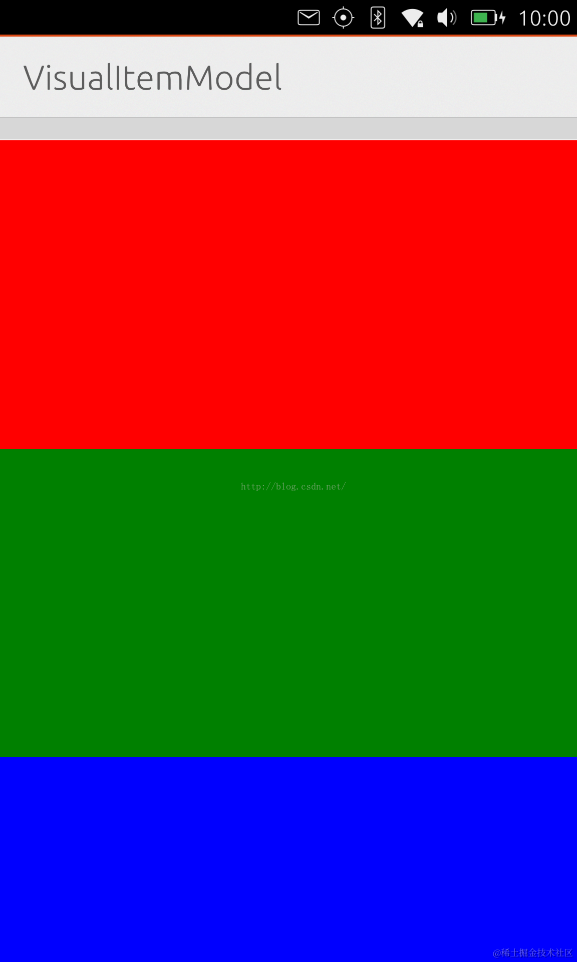 Rectangle { height: view.height/3; width: view.width; color: "blue" }