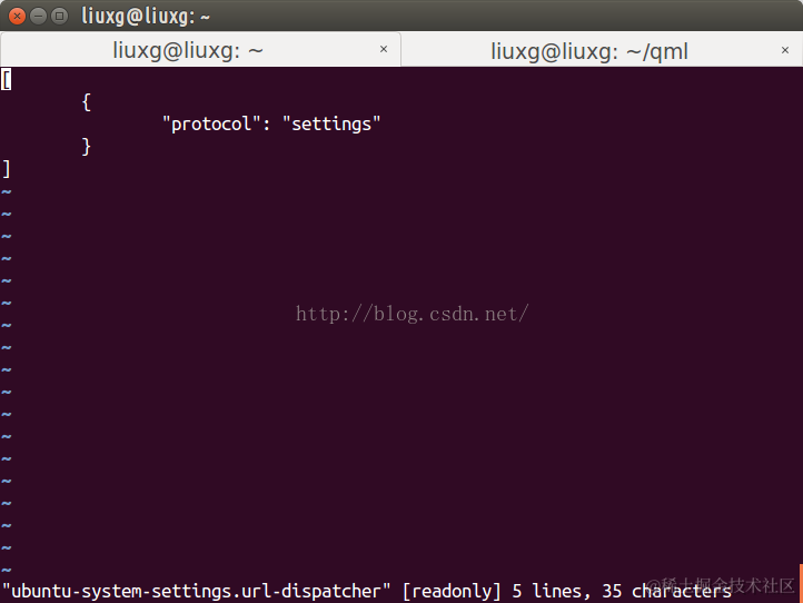上面列举了我们手机系统中已经有的URL dispatcher。比如我们可以查看system-settings的url dispatcher的protocol: