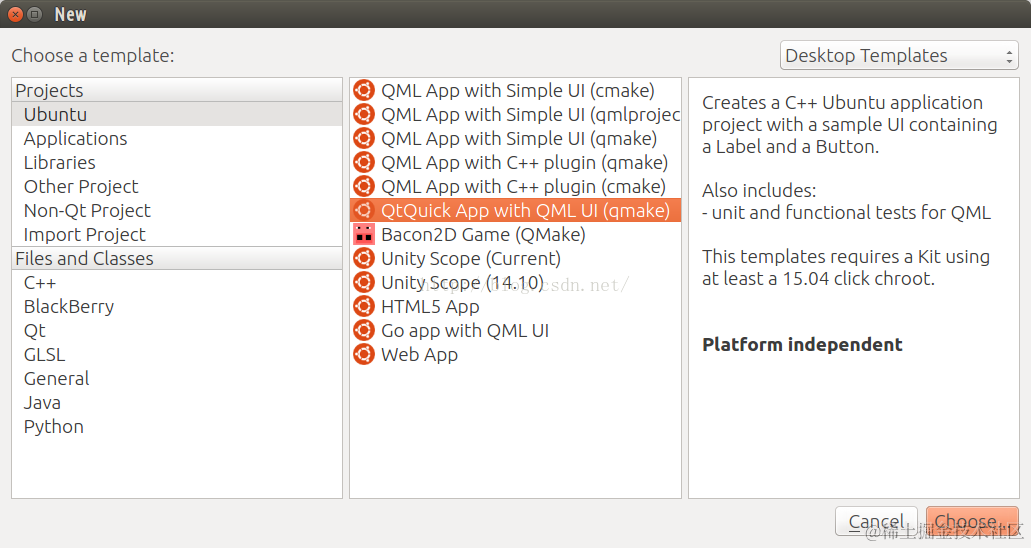 为了能够更好地使用C++在QML中的运用,我们选择了如下的模版: