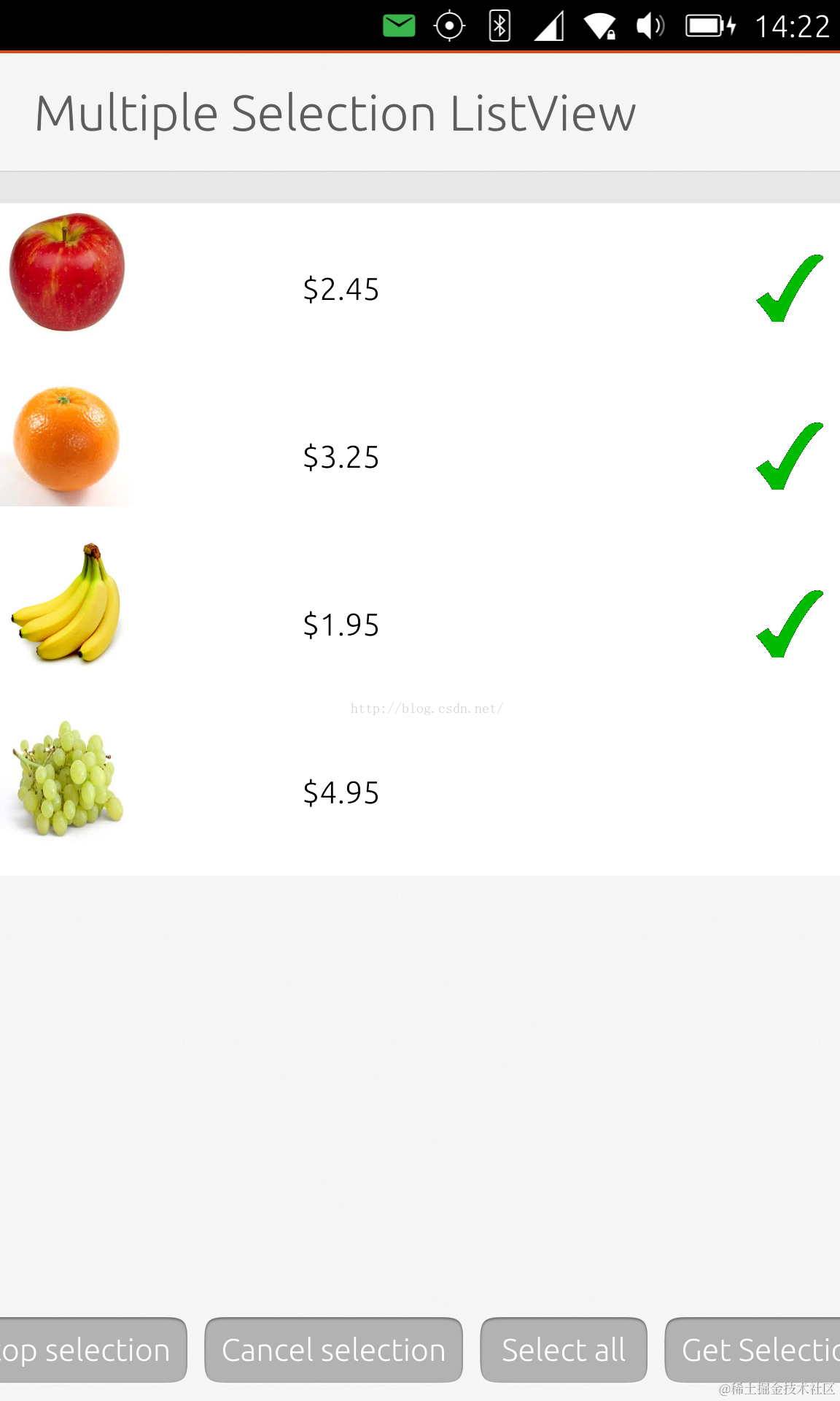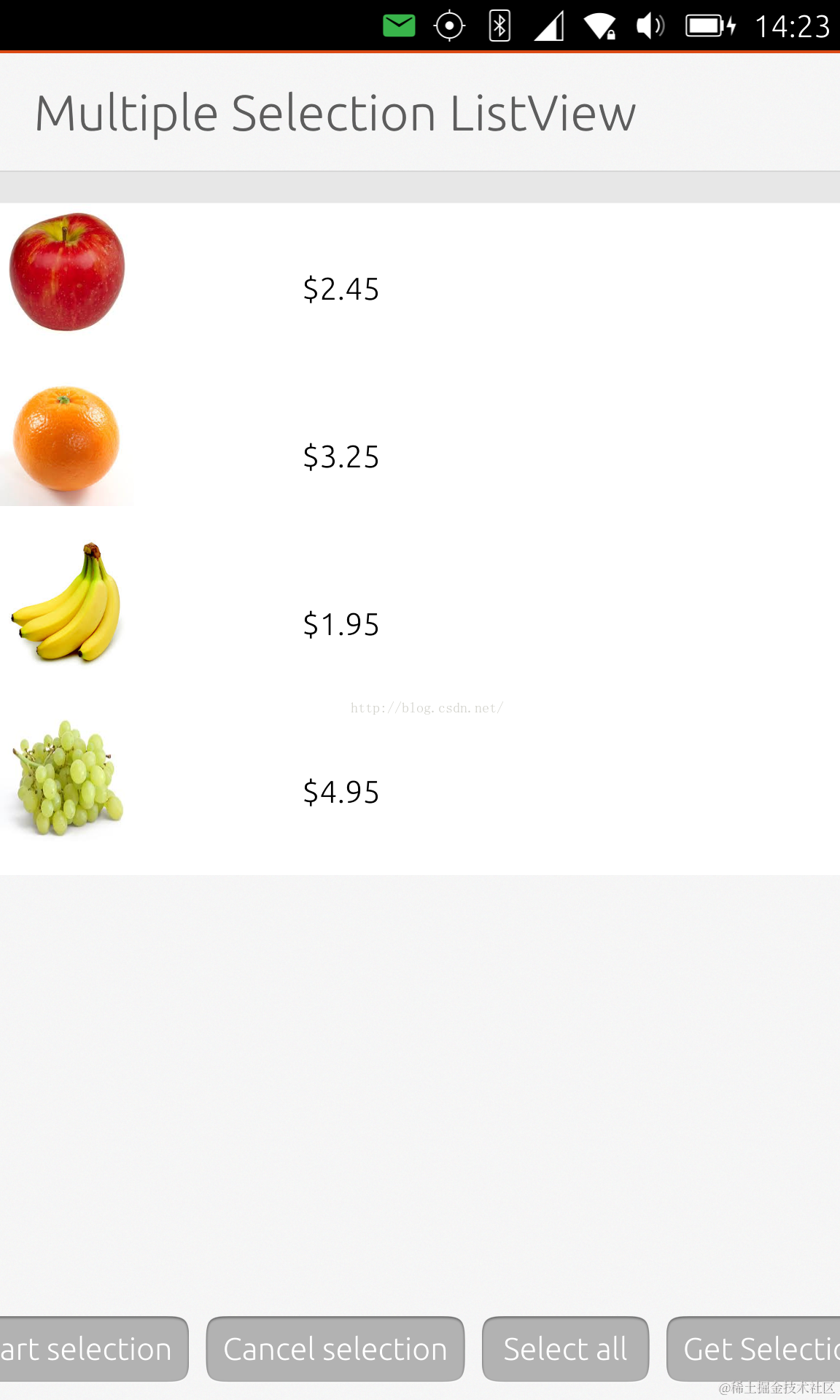 Start the selection mode on the list view.