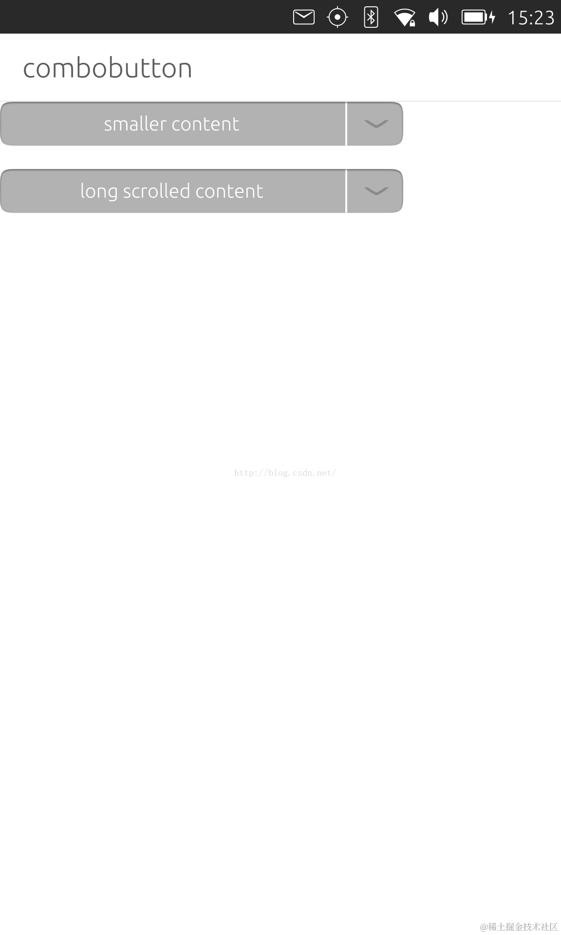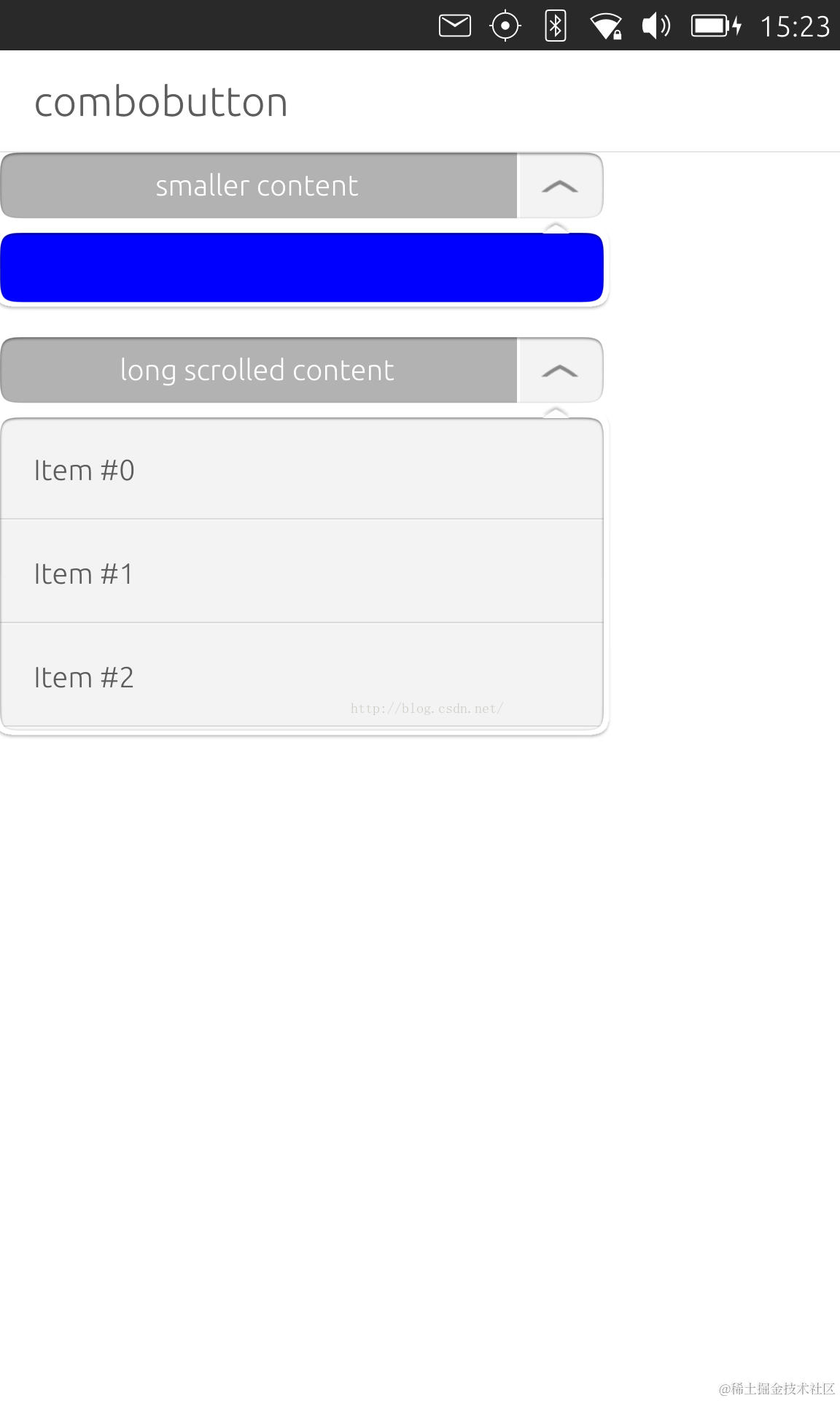 从上面可以看出来我们可以在一个drop-down的列表中选择我们所需要的选项.当然,我们也可以更新我们的ComboButton的text的内容.
