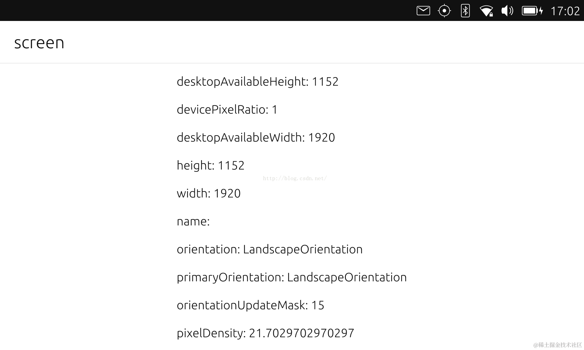 从上面的信息中,我们可以看出来,我们的Screen API给出的所有的信息.细心的开发者将会发现这里得到的信息和我们之前在文章" 如何得到屏幕和可用显示区域的大小尺寸及运用分辨率无关的编程"得到的屏幕尺寸是一样的.