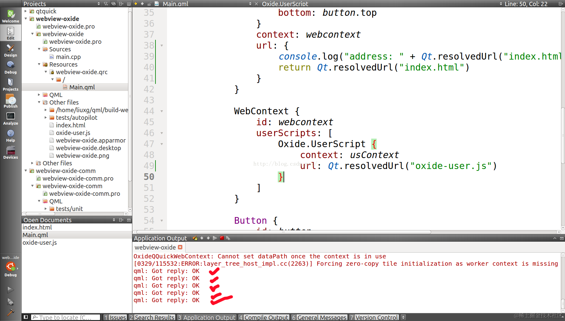 这样我们实现了从QML到HTML文件的交互.这对于我们设计一些基于地图定位或导航的应用来说是非常中要的手段.