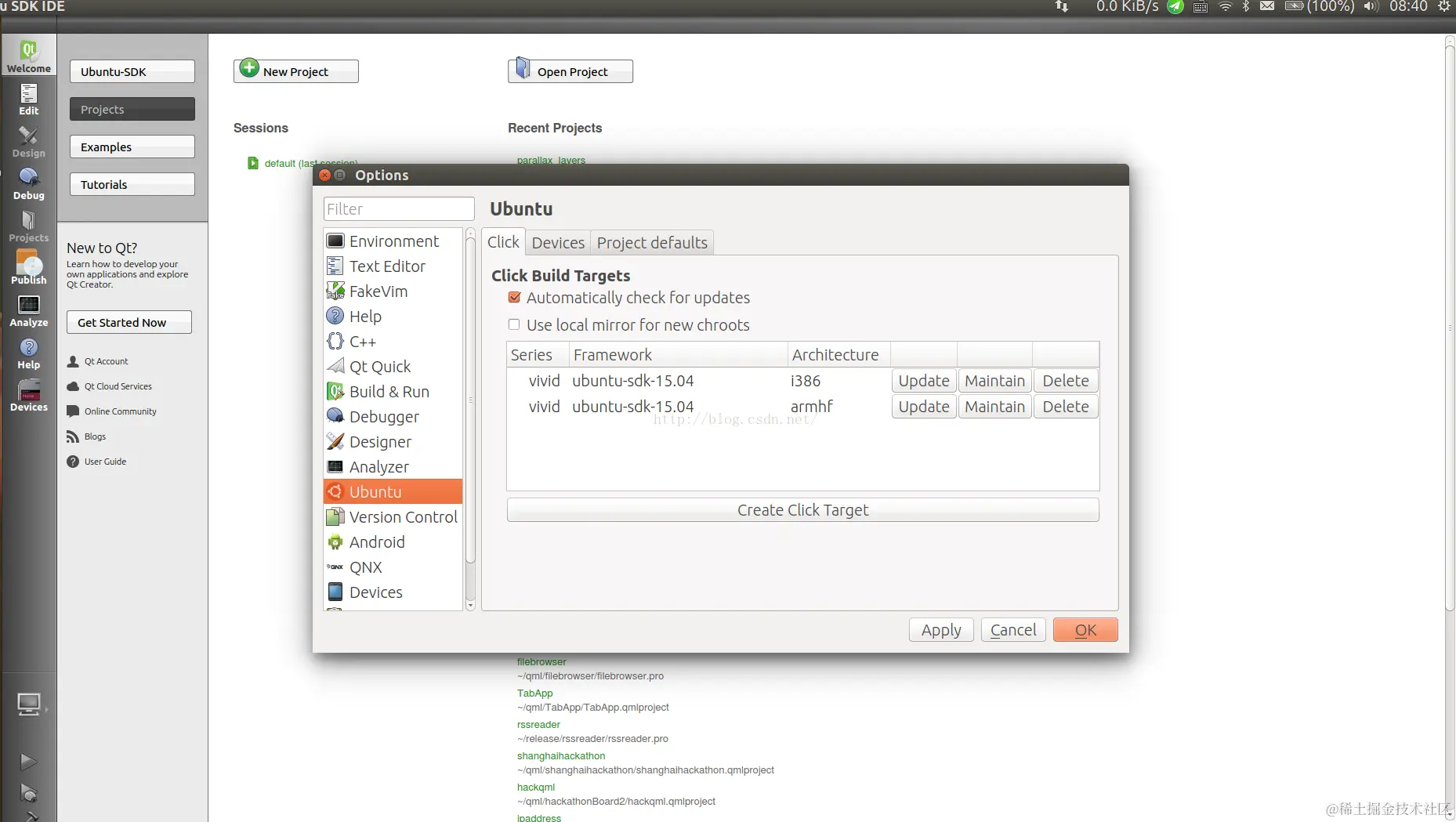 - 打开我们的Ubuntu SDK来检查我们的chroots