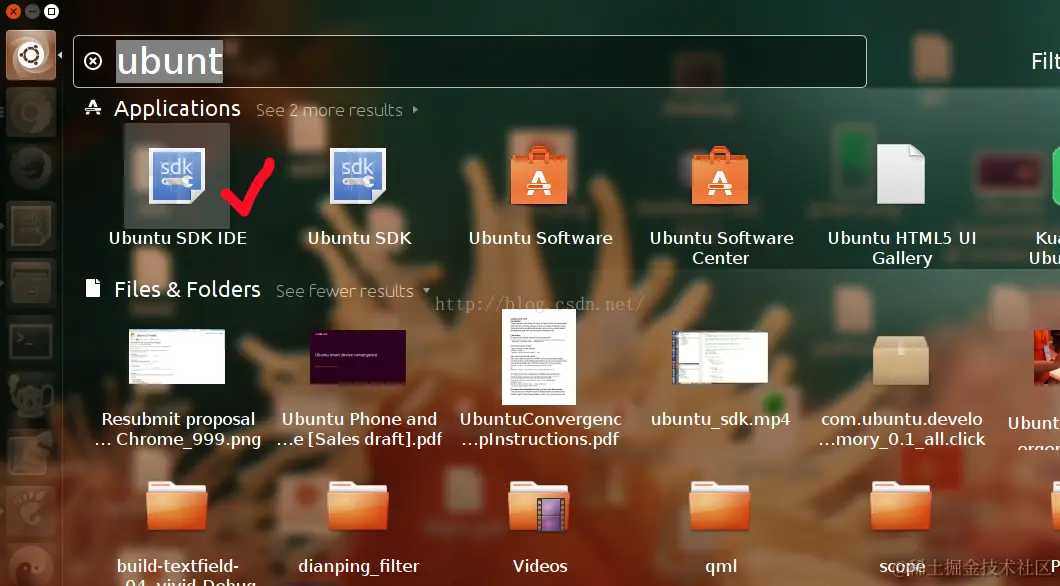 在这个步骤中,由于我们使用了ppa,所有它可以支持断点续传.如果失败了,它可以在下次安装时再次从上次中断的地方继续下载安装.一般来说我们并不担心这一步的失败.对于有些开发者来说,可以尝试使用VPN的方法来提高安装的速度.成功安装后,我们可以在dash中找到我们所需要的Ubuntu SDK: