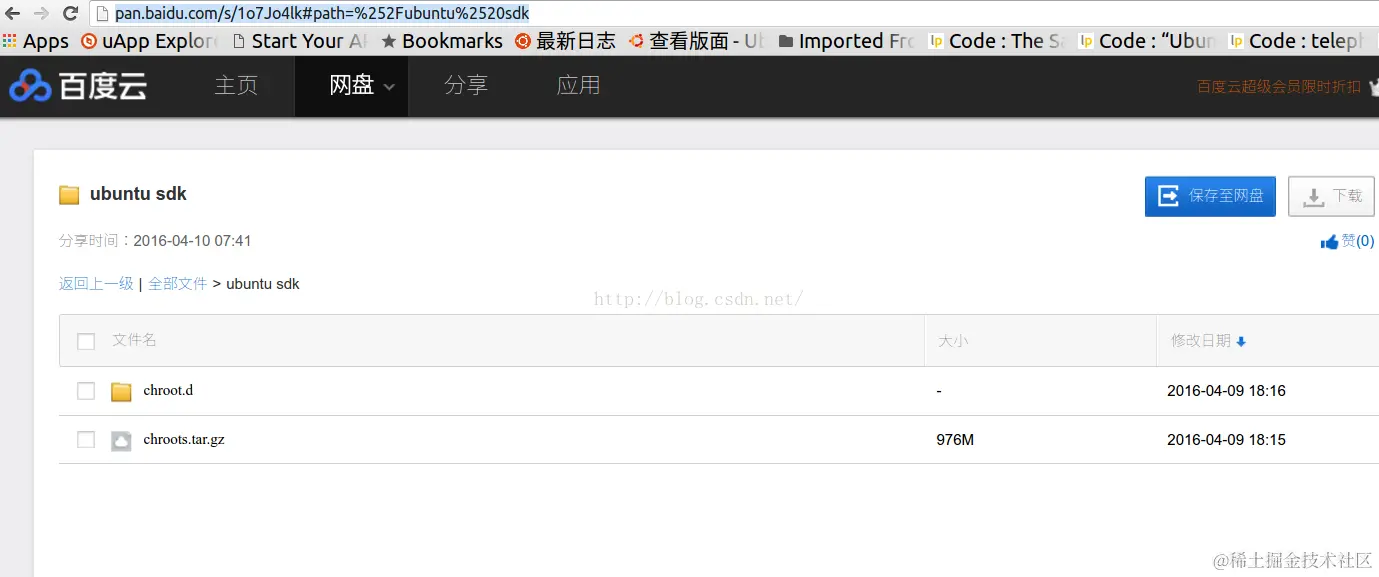 在实际的安装中,我发现有很多的开发者在进行上面的安装时由于网路的原因而导致上面的安装不能成功.基于这个原因,我们把我已经成功安装过的chroots上传到我们的百度网盘供大家下载.等下载完后,我们再把它们解压到我们所需要的路径中.这样的安装好处是,我们可以使用各种方法进行断点下载我们打包过的chroots,并成功拷贝到相应的目录中.这个方法的缺点是:chroots可能不是最新的.开发者在以后的SDK中可以进行自动更新或手动更新我们的chroots.不过一般来说,这个chroots已经够用即使在不更新的情况下.