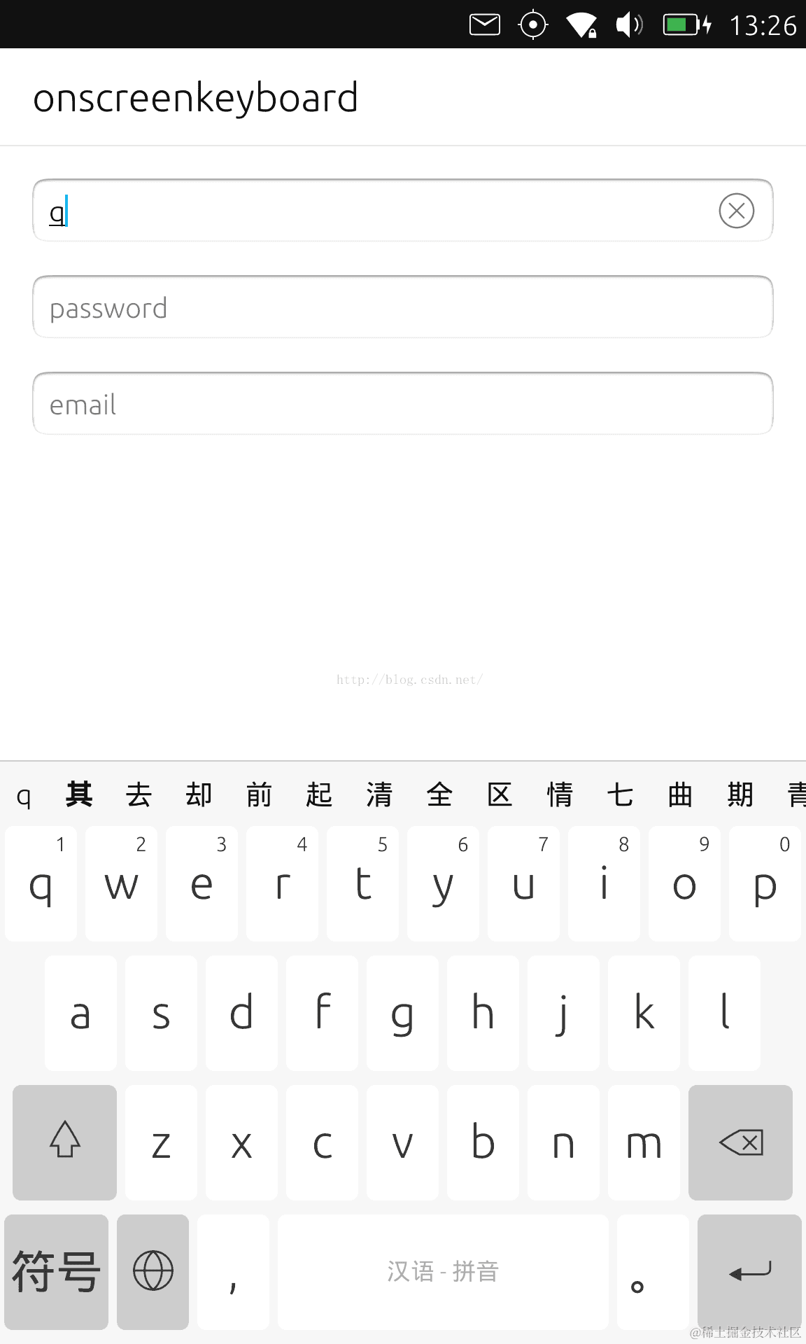 运行我们的应用,并在最下面的输入框中点击进行输入: