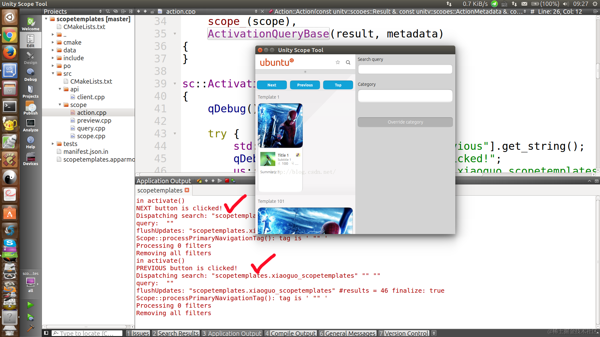 按照如下的方法来捕获我们的按钮事件.我们必须在scope.cpp中创建如下的方法: