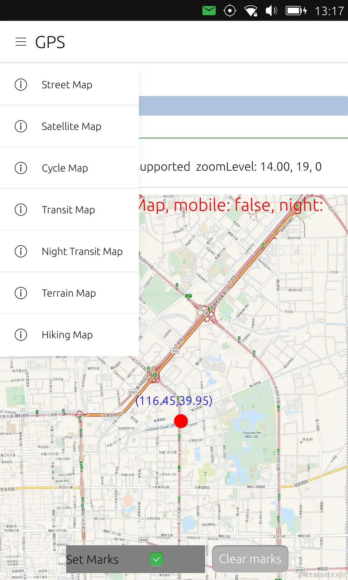 在这里,我们使用了"map. supportedMapTypes"来列表所有的被支持的地图形式.最终在我们的应用中: