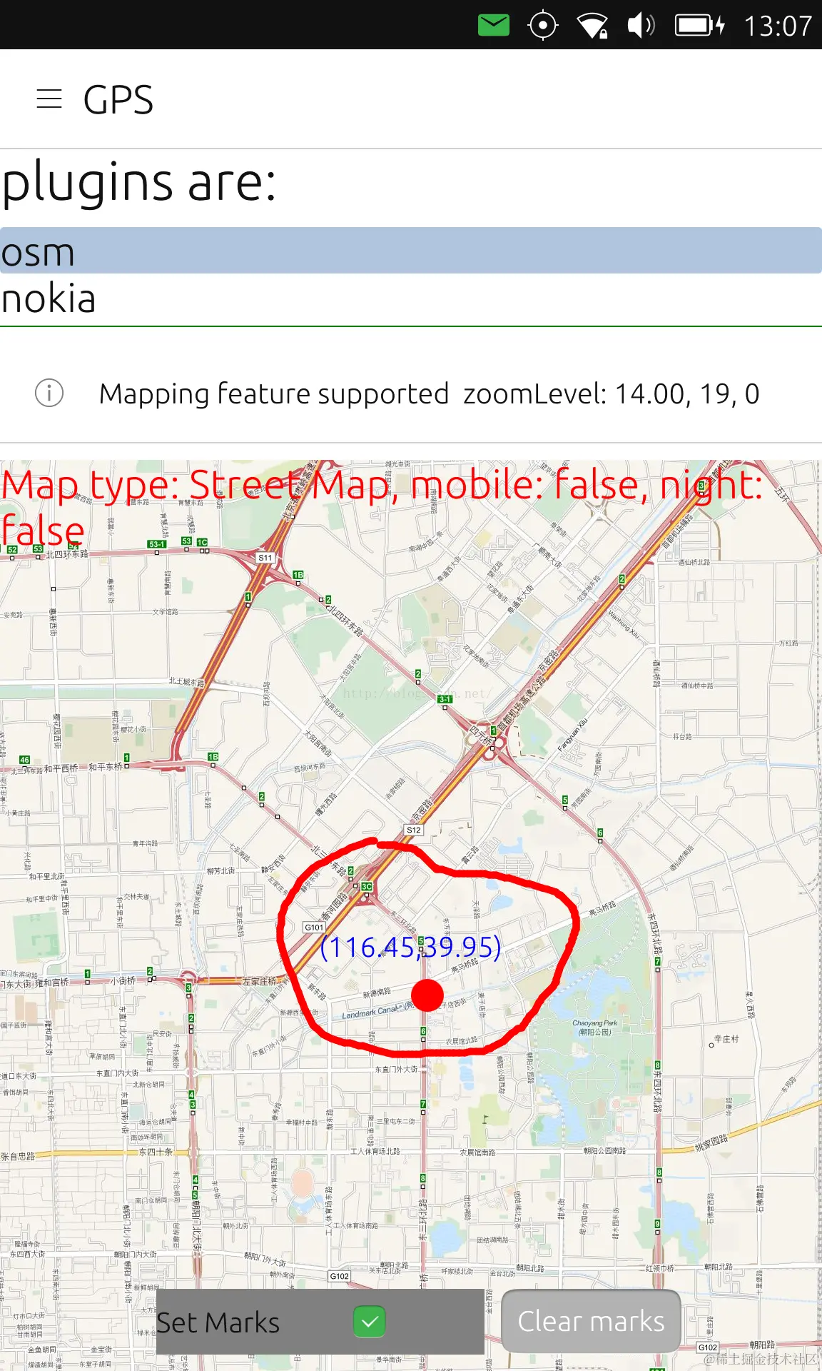 在上面我们通过Qt.createQmlObject来动态地创建一个MapCirle的控件.我们通过map. addMapItem来添加进去.当我们点击地图时,我们把标注加入到地图中去: