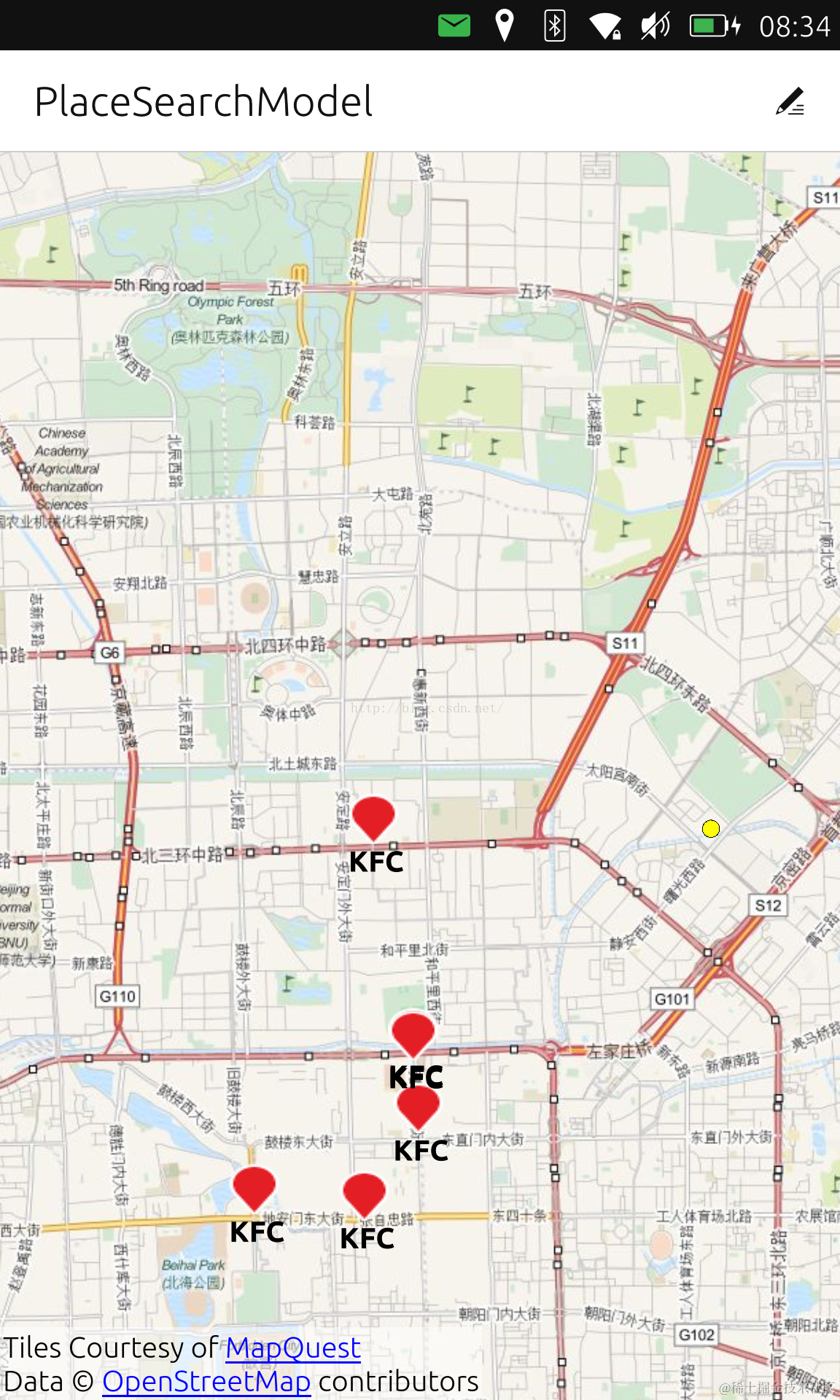 在Ubuntu SDK中,它提供了一个PlaceSearchModel接口.通过这个接口,我们可以在规定的区域里搜寻我们需要的地点,比如,KFC, Pizzar,或银行.在今天的教程中,我们来利用这个API来展示如何搜寻我们的兴趣点.